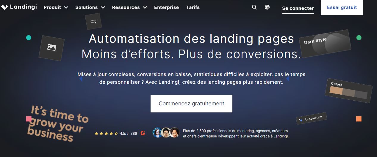 Landingi séduit par sa polyvalence, sa prise en main rapide et son positionnement tarifaire raisonnable. Il fait partie des outils de création de landing page capables de répondre à de nombreux cas d’usage, tout en conservant une interface intuitive et des options d’optimisation pertinentes.